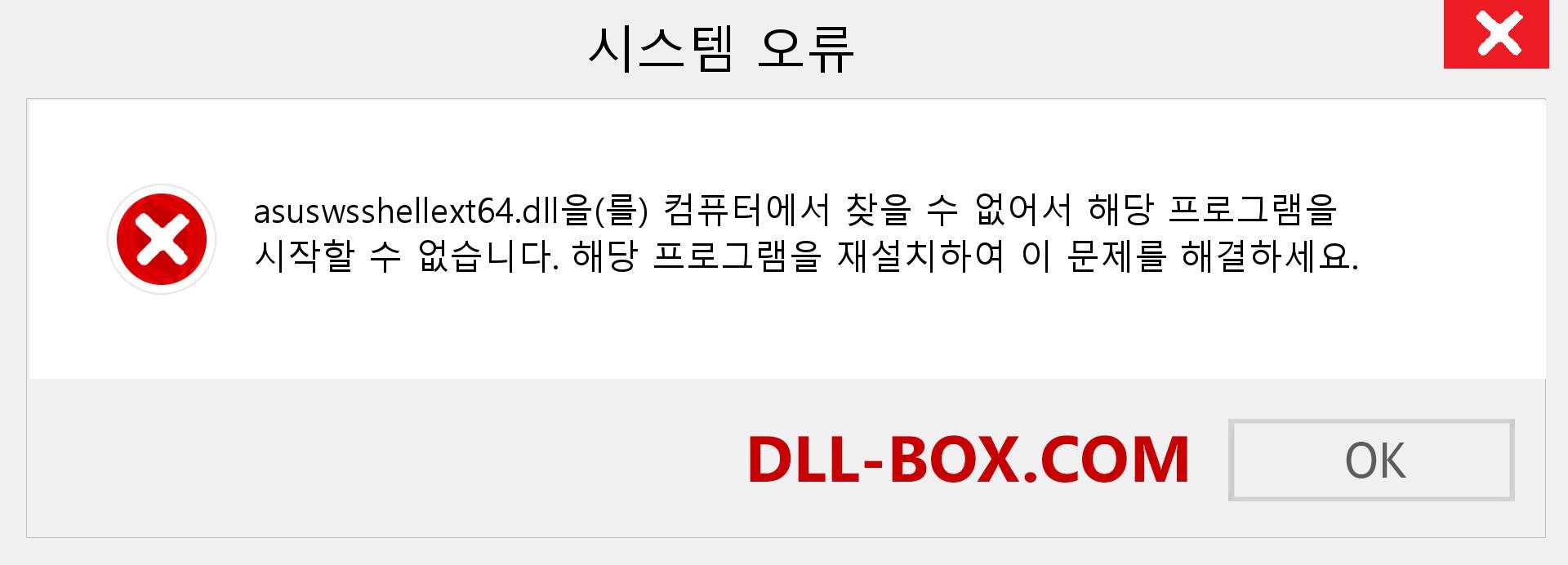 9. asuswsshellext64.dll를 찾을 수 없습니다.